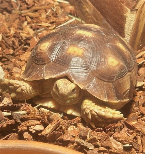 Taco was dropped by a predator in front of our home at 3 weeks of age. She will be a full year on September 26th, 2025. She is an African Sulcata. She was immediately taken to the vet for a health check and has been for a check up every 6 months and health checks anytime we boarded her. Documents are available upon request. We were never intending on keeping her as we know and understand the commitment these cuties require, but instead just assisting her through her first year of life to ensure the best success for her. I am a licensed vet tech and have had the privilege of assisting her with all of her needs. Now she is older, exploring more, growing more, and requires needs that I cannot give her on a temporary basis. I am only interested in re-homing her to someone who understands the long term commitment, dietary and growth of the species, and the outdoor area requirements that she will need, etc. She is very sweet, still head-shy, but LOVES to explore.