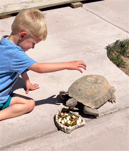I picked up Sheldon from an Estate Sale where the owner had passed away and the Estate was going to release him into the wild. He's a good ole boy (don't know his age but he's probably older than my adult children) and would not have made it on his own. He has a voracious appetite and is very social. He is attracted to voices and has no problem with my curious pup. I unfortunately escape the desert climate when it gets too hot and I am not able to care for him. Someone with room, and the heart to care for him, please take him in.